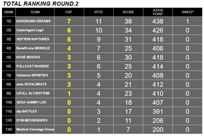 このなかで最高スコア223点をたたき出したのは、KADOKAWA DREAMSでSWEEP勝利をおさめ、TOTAL RANKINGでも1位に躍り出た。