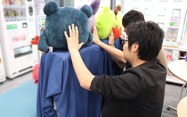最後に、ネットマーブルのマスコットキャラクターたちをバックに記念撮影!