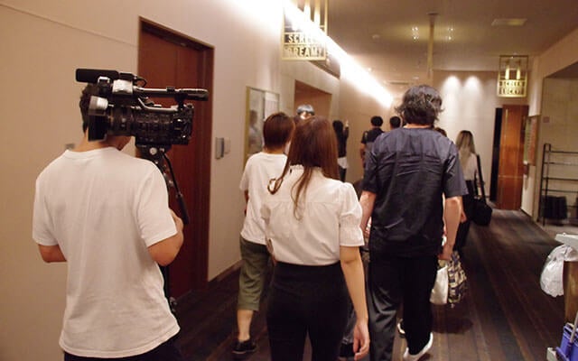 取材の方々と一緒に舞台挨拶の劇場まで向かいます。