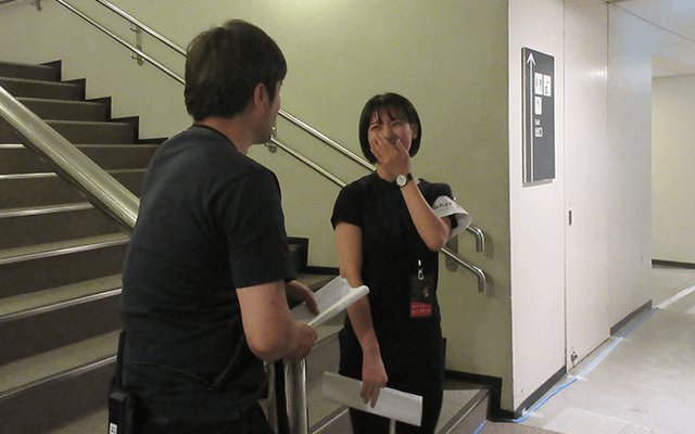 辻野さん 「仕事を教えて下さる方も忙しくされていて、そして現場では、出演者の方も出番を控えられていたので、邪魔にならないようにしつつ、少しでも役に立てるようテキパキと素早く行動することを意識しました!」