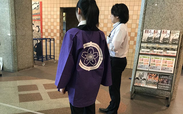 まずはハッピを貸していただき、場内の案内をしていただきます。