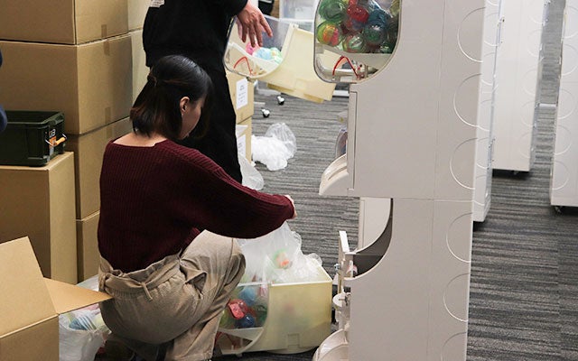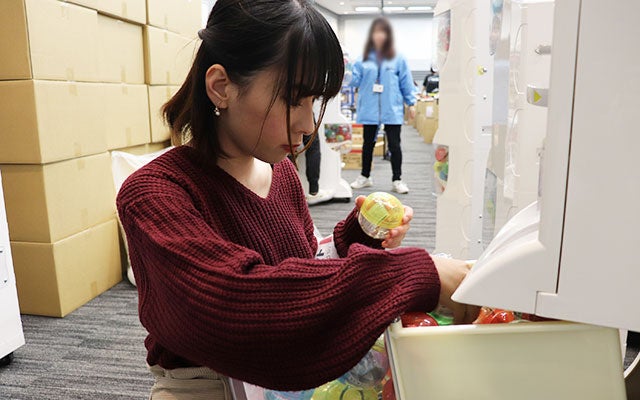 今回のお仕事は物販周りでの業務です。廣澤さんはガチャガチャの業務を任されました!