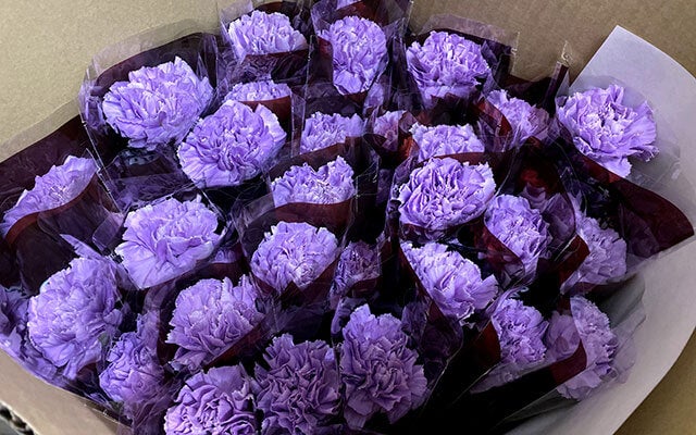 今回、舞台挨拶にいらしたお客様に「ムーンダスト」という青いカーネーションをお渡しするお仕事のお手伝いをしていただきます。