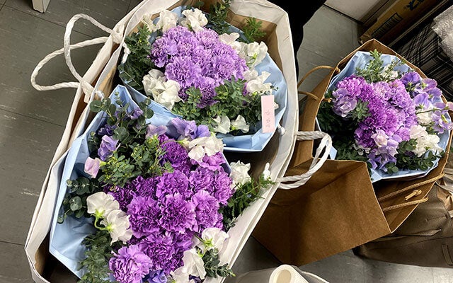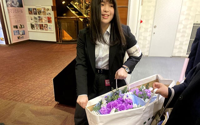 舞台挨拶で使用する大きな花束は直接スタッフさんが運んできます。