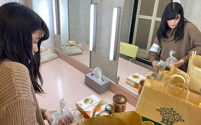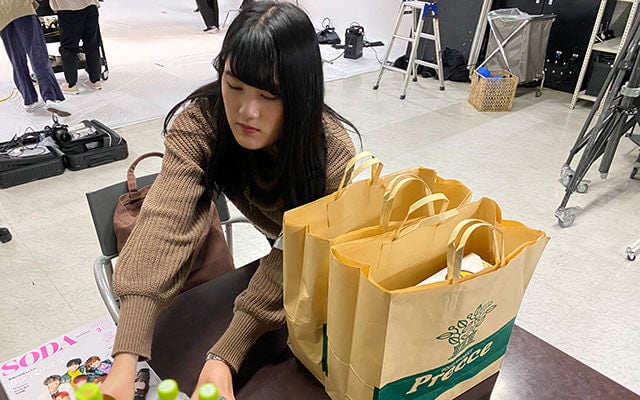 取材をする場所と楽屋に、飲み物や軽食を準備していきます。