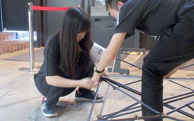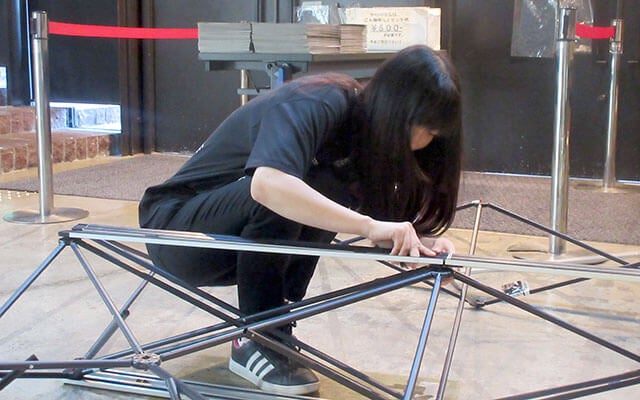 初めのお仕事は、会場入り口付近に設置するポスター掲出用の器具を組み立てるお仕事。