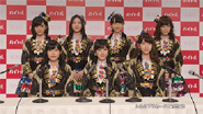 記者発表会場に現れた『神7』(渡辺麻友さん、指原莉乃さん、柏木由紀さん、松井珠理奈さん、松井玲奈さん、山本彩さん、島崎遥香さん)のメンバー。