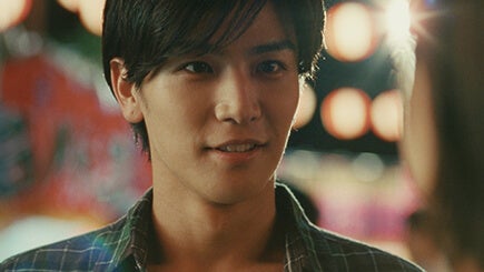 二人で訪れた花火大会で、恋人に水ヨーヨーを渡す岩田さん。もう一つプレゼントがあると恋人に伝え、「正社員になる」と力強く宣言。恋人との将来を見据え、真剣なまなざしで思いを伝える岩田さんの迫真の演技が見所です。