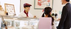 注文された商品を包んだり、レジで会計をする仕事です。スイーツ販売ではラッピング対応をすることも。