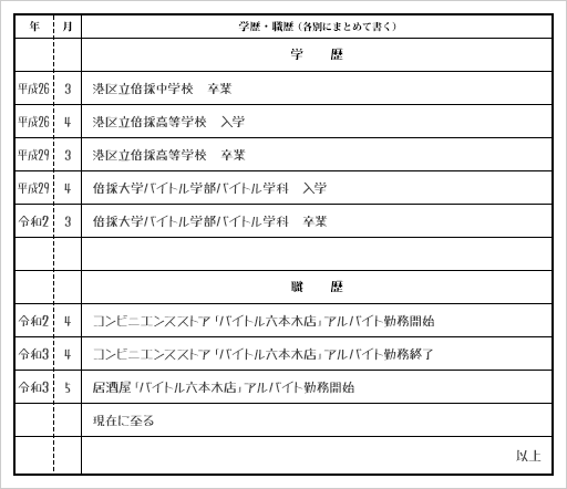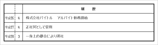 また、入社と退社を一行にまとめてしまってもかまいません。