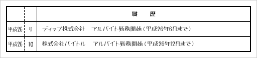 フリーター歓迎の仕事を探す応募職種に近いものをピックアップして書くようにしますが、それだけだと空白期間が気になります。他の職歴も簡単に補足しておくとよいでしょう。